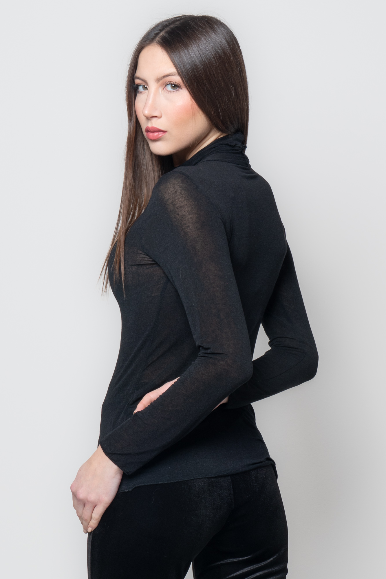 Dolcevita nero trasparente a maniche lunghe in jersey leggero