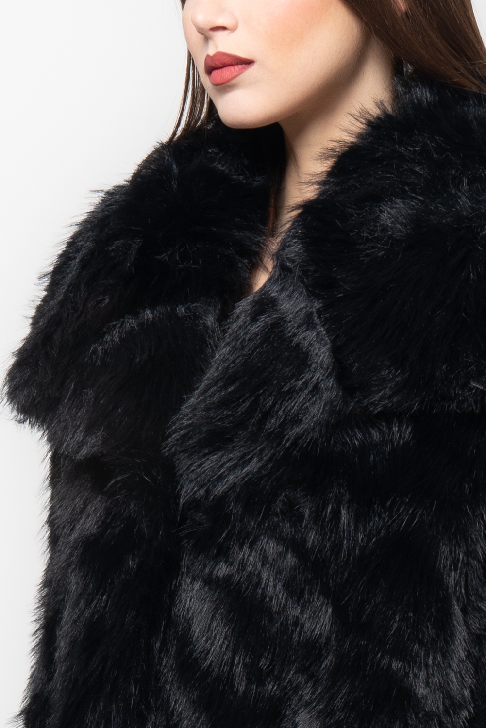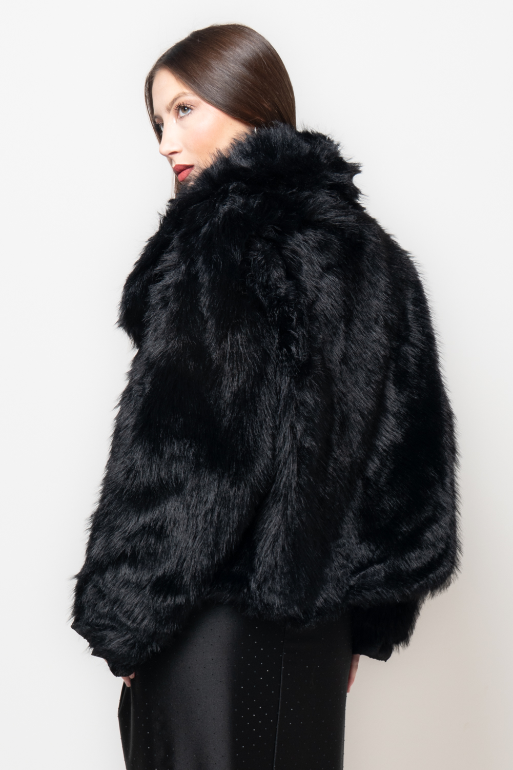 Giacca in eco pelliccia nera con collo ampio e taglio corto